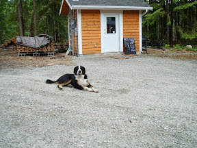 They were back Saturday evening when we went out to have a campfire. Apparently they were concerned whoever was rustling paper and chopping wood was up to nefarious deeds, so they came bursting through the trees at the front of the house, barking madly. When they saw it was Sean and me, they stopped dead and began wagging their tails, then mooched about a bit before trundling back to their guard positions on the road.